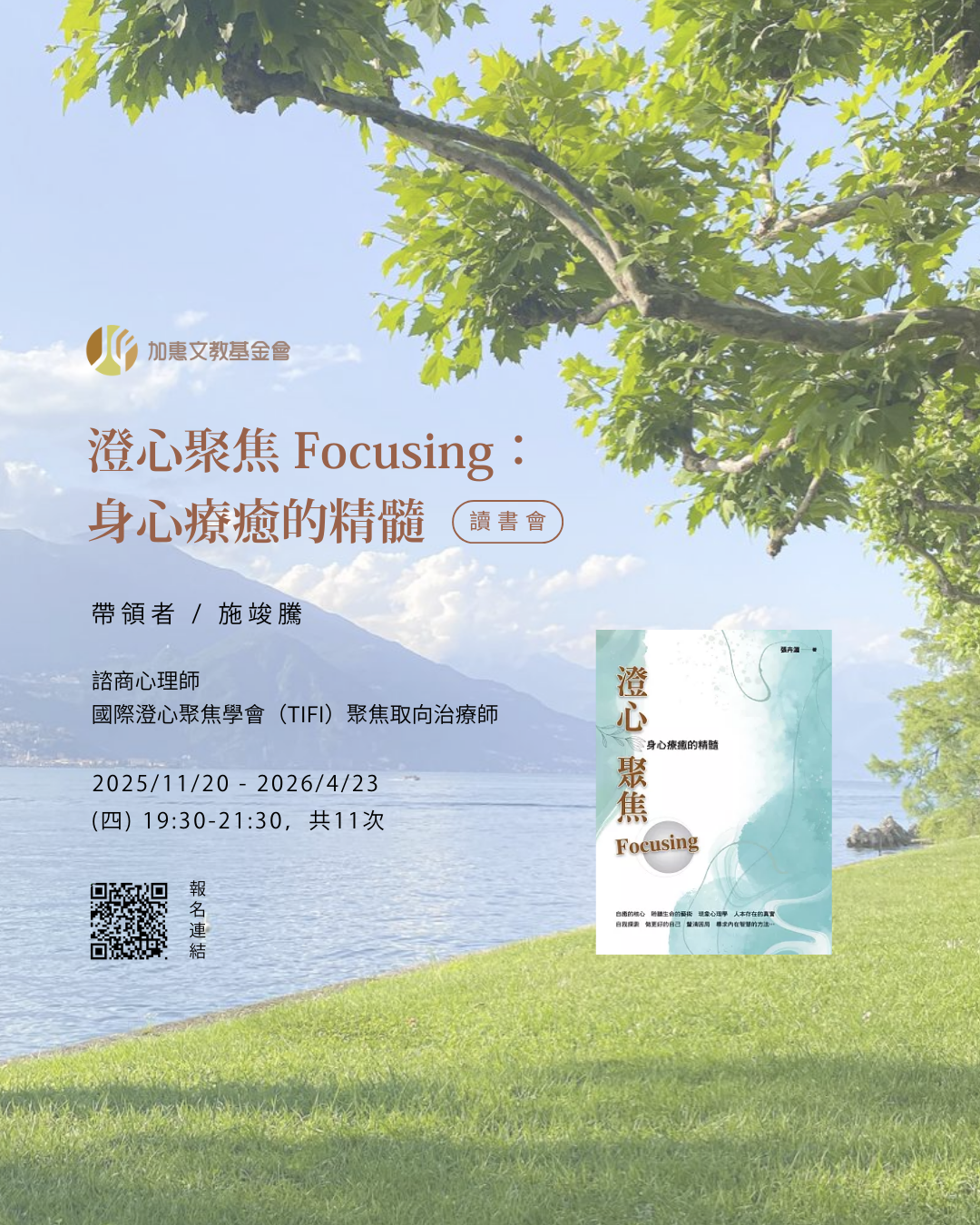 【澄心聚焦 Focusing:身心療癒的精髓讀書會】